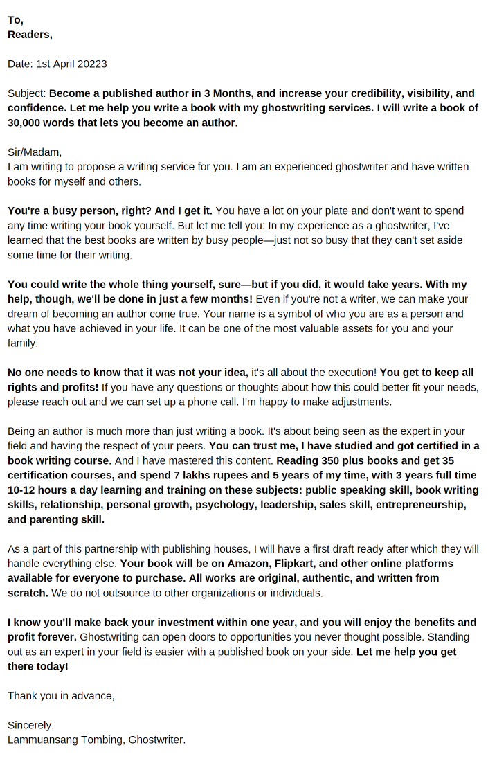 Are you tired of being a ghost, unseen and unheard? Do you have a message that you want to share with the world, but don't have the time or skills to write a book? Our ghost writing service can help you make your mark on the world and ensure that your name is remembered for generations to come.